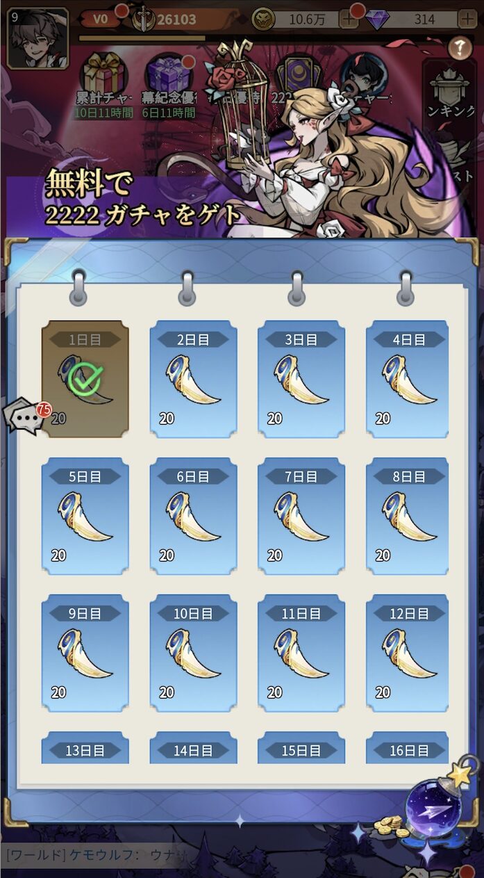 毎日ログインするだけで1日20連、最大112日間回せます。