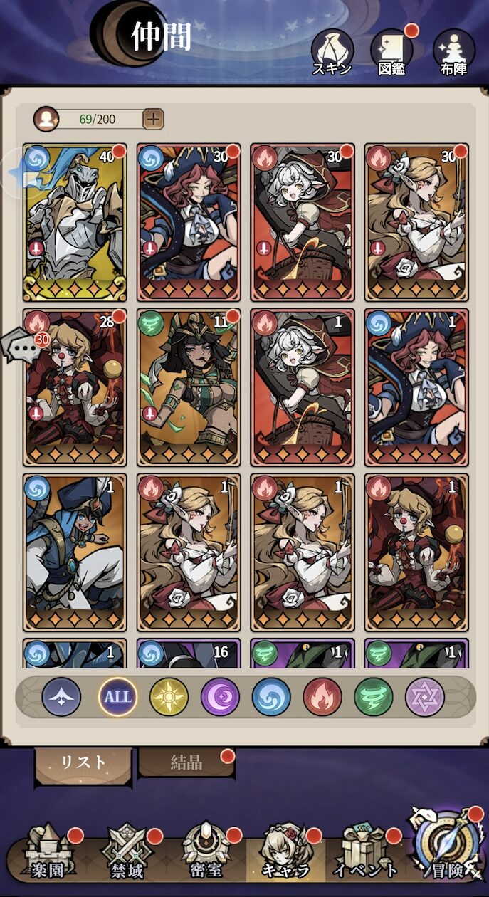 育成素材が足りなければ十分に活躍ができないので、序盤は主力メンバーを中心に育成して、使うキャラクターをある程度絞るのがおすすめです。