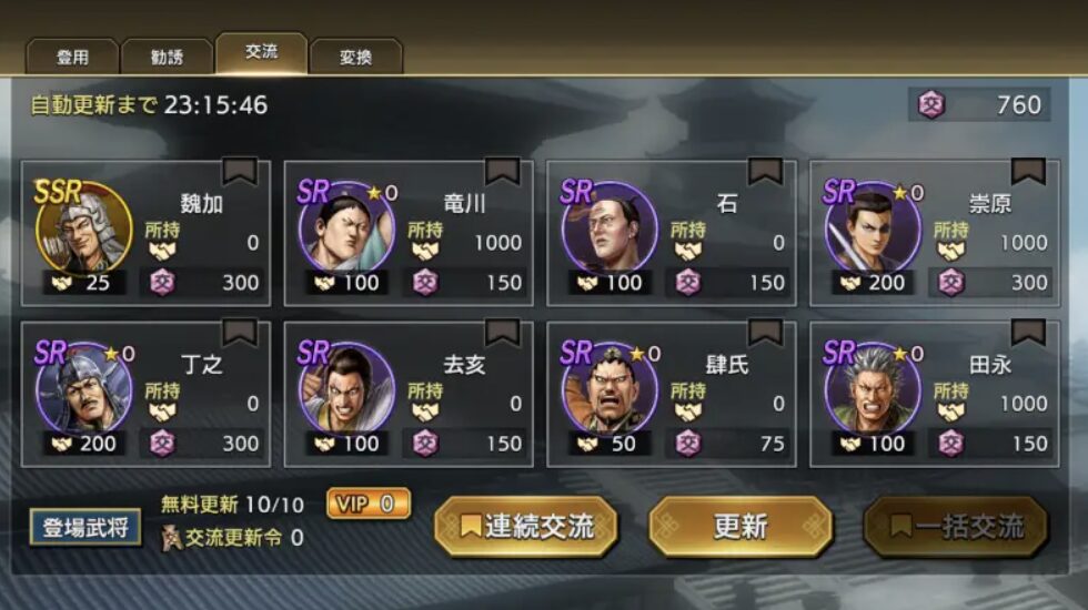ガチャ以外にも交渉機能で武将入手のチャンスがあります。