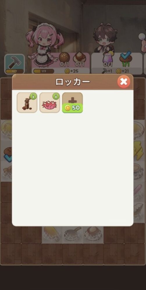 序盤の盤面はかなり狭くすぐにアイテムでいっぱいになってしまいますので、「ロッカー機能」を活用するのがおすすめです。