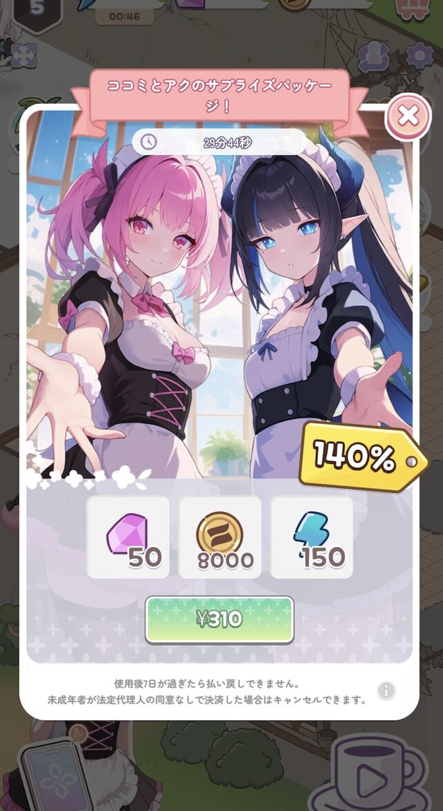 価格は310円で、ジェム×50・コイン×8000・スタミナ×150を獲得できます。