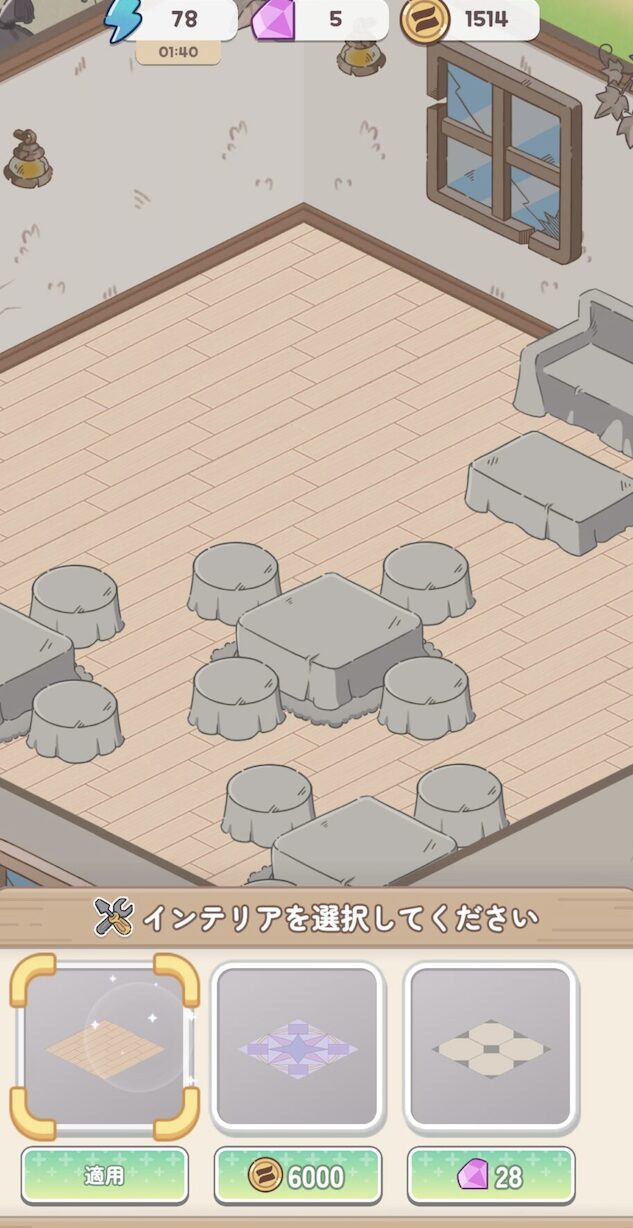 序盤は「壊れた椅子を修理する」「カウンターを整える」といったわかりやすい目標が次々に表示されるため、初心者でも迷わずに進められます。