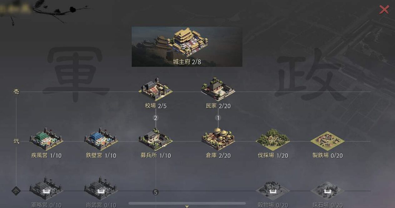 ゲーム内容は、出兵と城の施設の強化を繰り返していくものです。