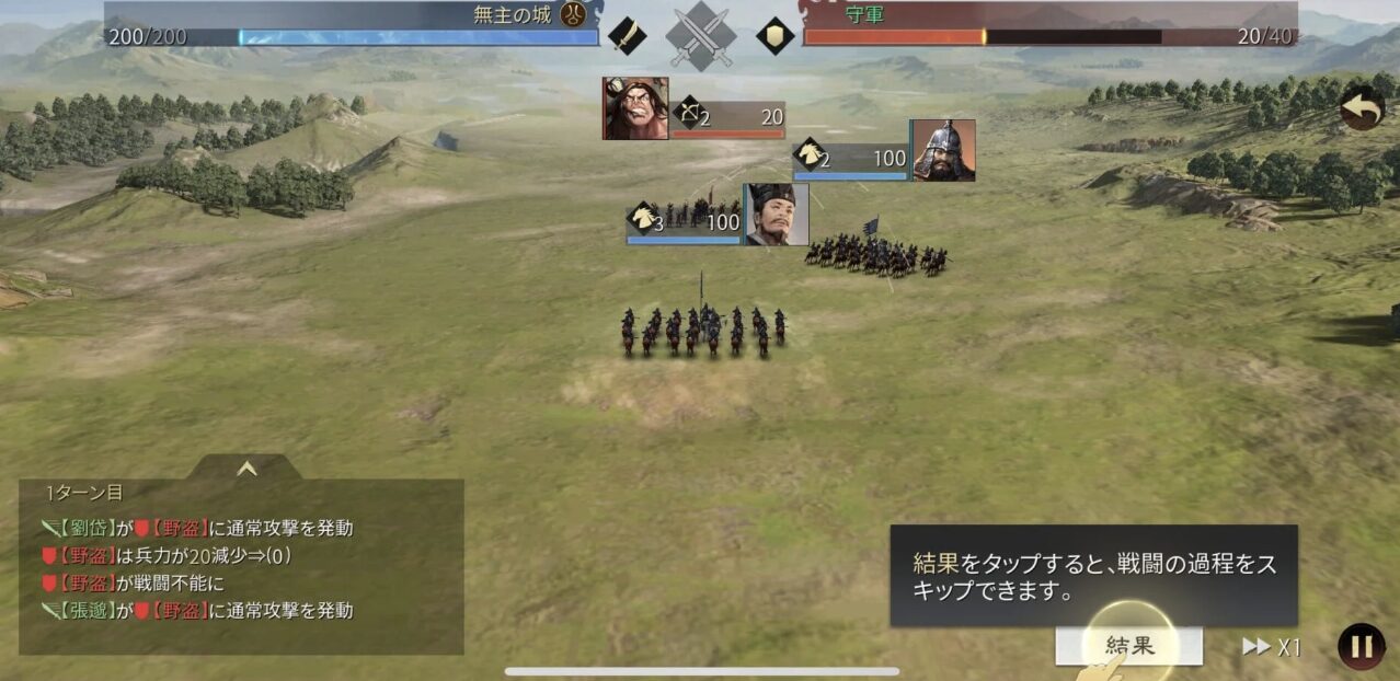 マスを指定して出兵させると進軍やバトルは全てオートで行われ、バトルに勝利するとそのマスを占領することができます。