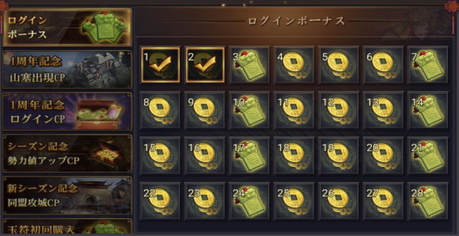 ログインボーナスが充実