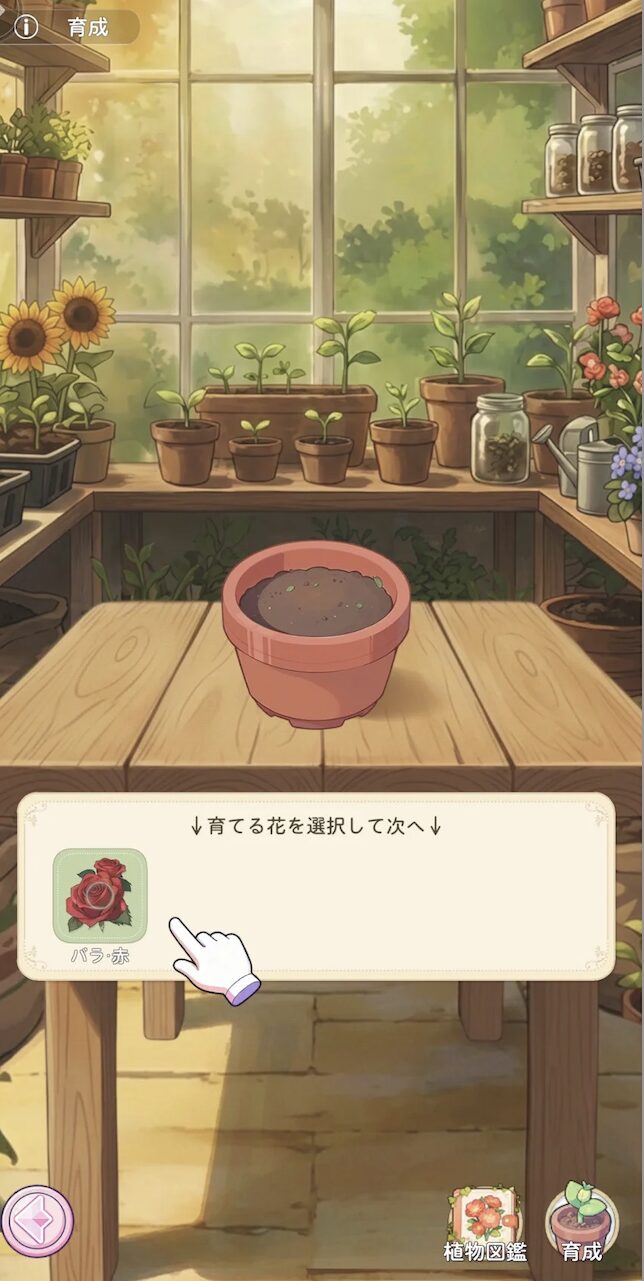 まずはチュートリアルに従って、できるお花&好みのお花をどんどん育成していけばOK!