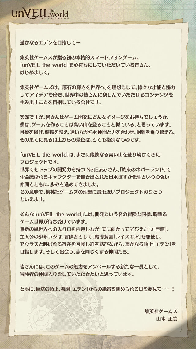 事前登録者数が50万人を突破し、これを記念に同社の山本正美氏から以下のメッセージが公開されています。