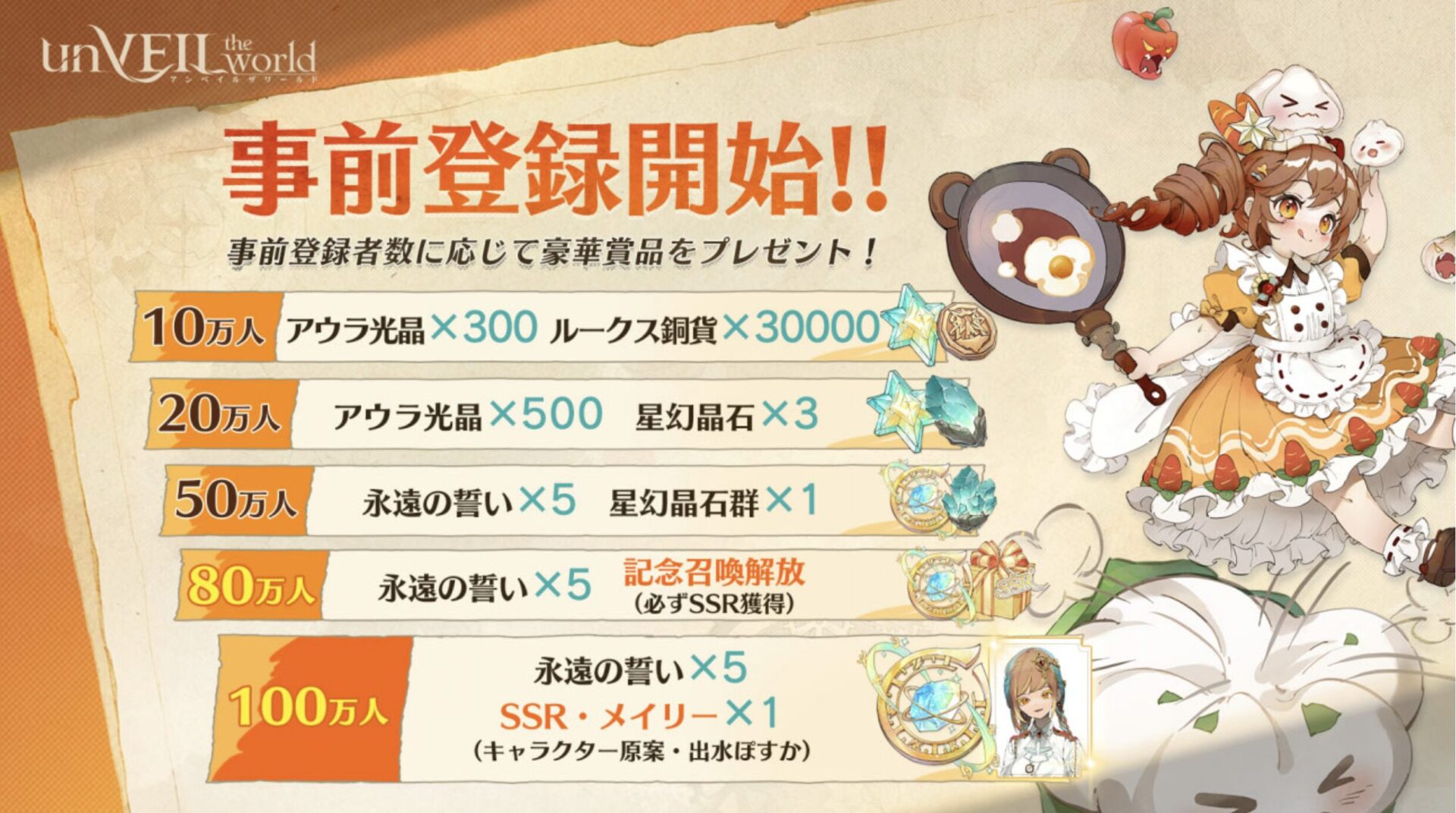 事前登録者数が100万人を突破すれば、SSRキャラクター合計2人が必ず手に入ります。